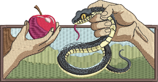 Nesta estampa, o gesto é invertido: não o ato de tomar, mas o de devolver. O instante antes da queda transformado em um convite à redenção.